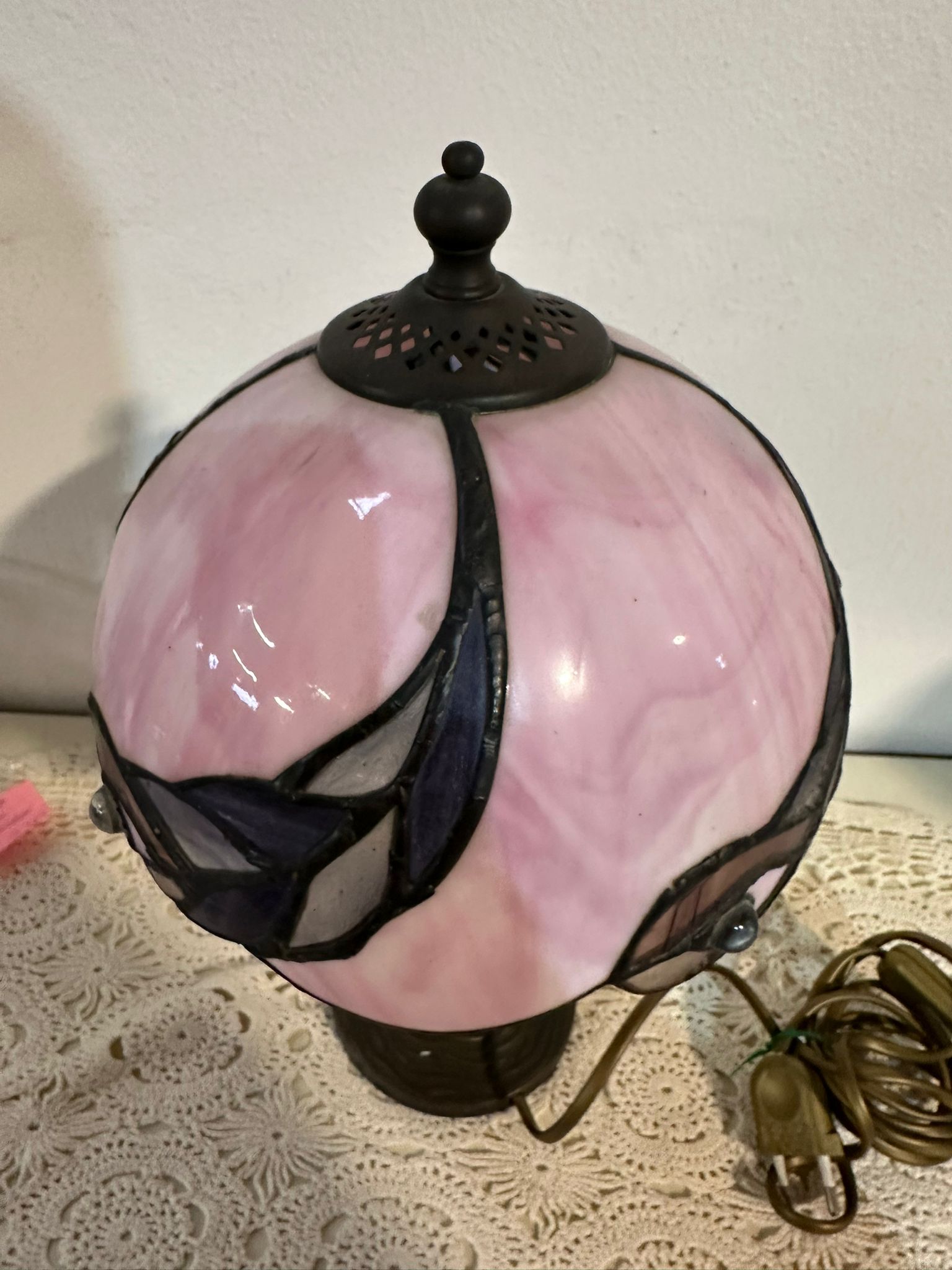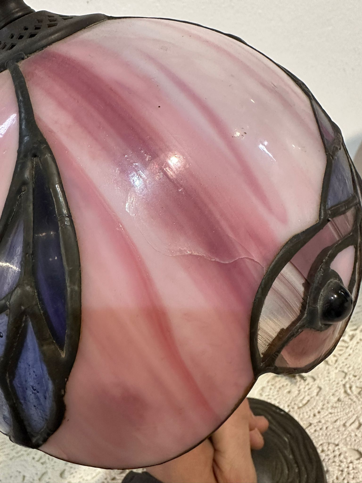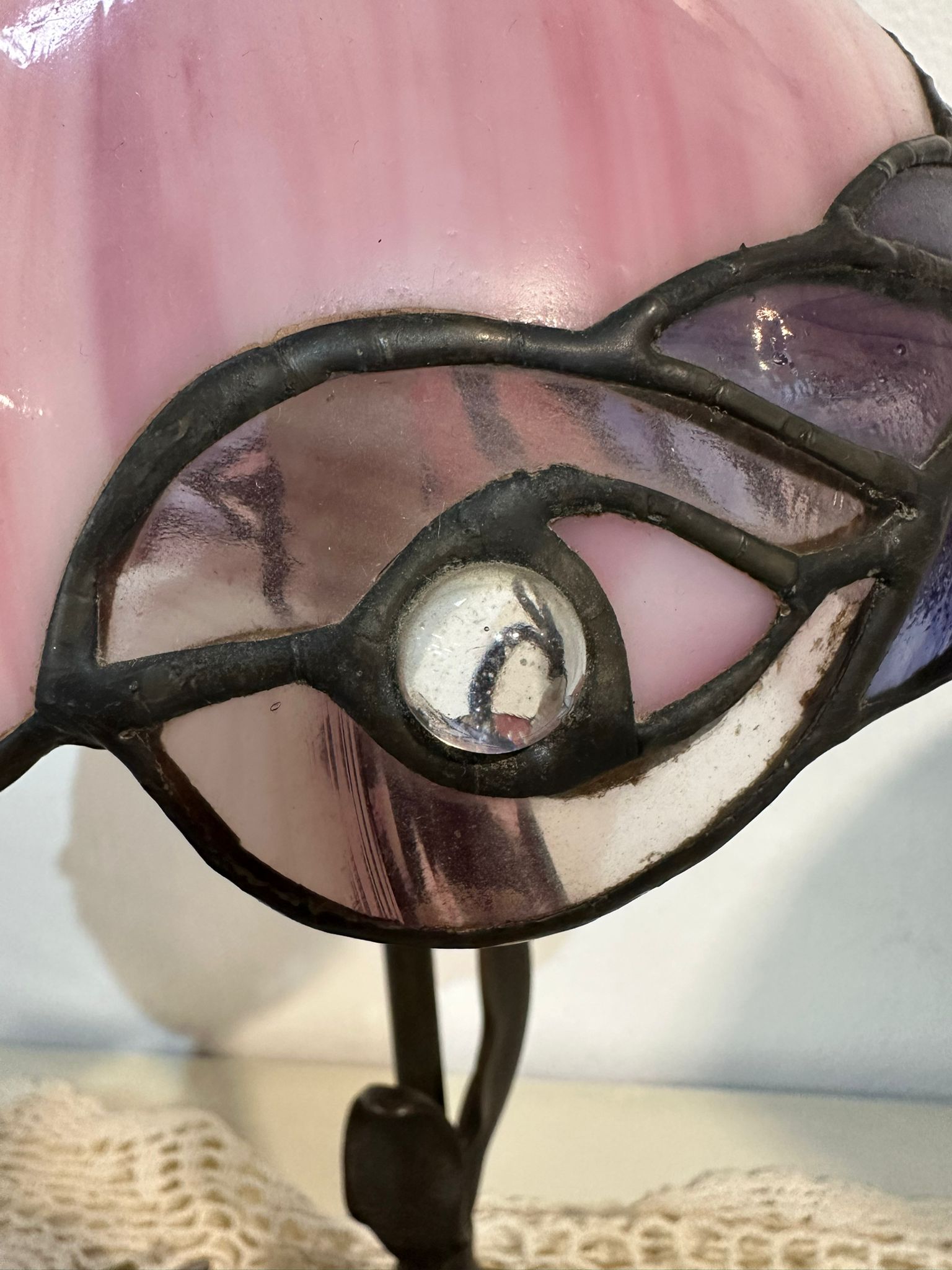 Coppia di Lampade da Tavolo Tulipano – Design Vintage anni ’70/’80 Descrizione: Elegante coppia di lampade con diffusori in vetro soffiato a forma di tulipano. Le sfumature dal rosa all’arancio creano una luce calda e accogliente. Struttura in metallo brunito d’ispirazione Liberty.